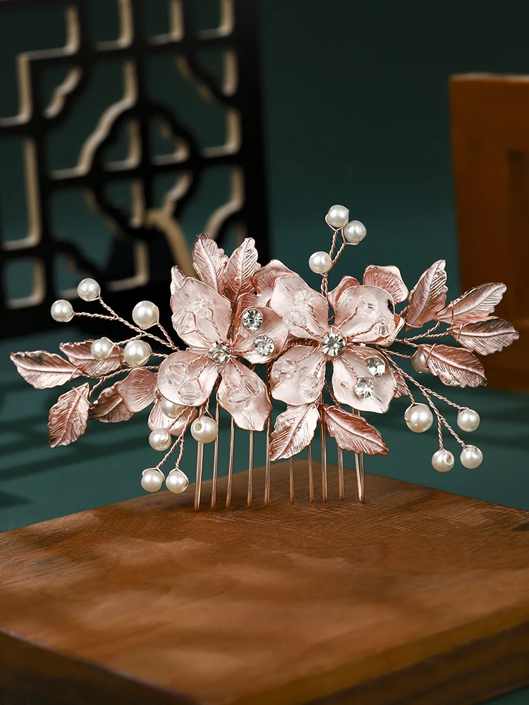 Fashion Metal Blade Bridal Hair Comb Pearl Rhinestone Hairpins Handmade Bangs Side Hair Clip Wedding Jewelry Hair Accessories
